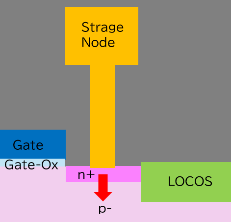 Fig. Local leakage paths responsible for Pause Refresh failures in 0.25µm-generation DRAM
