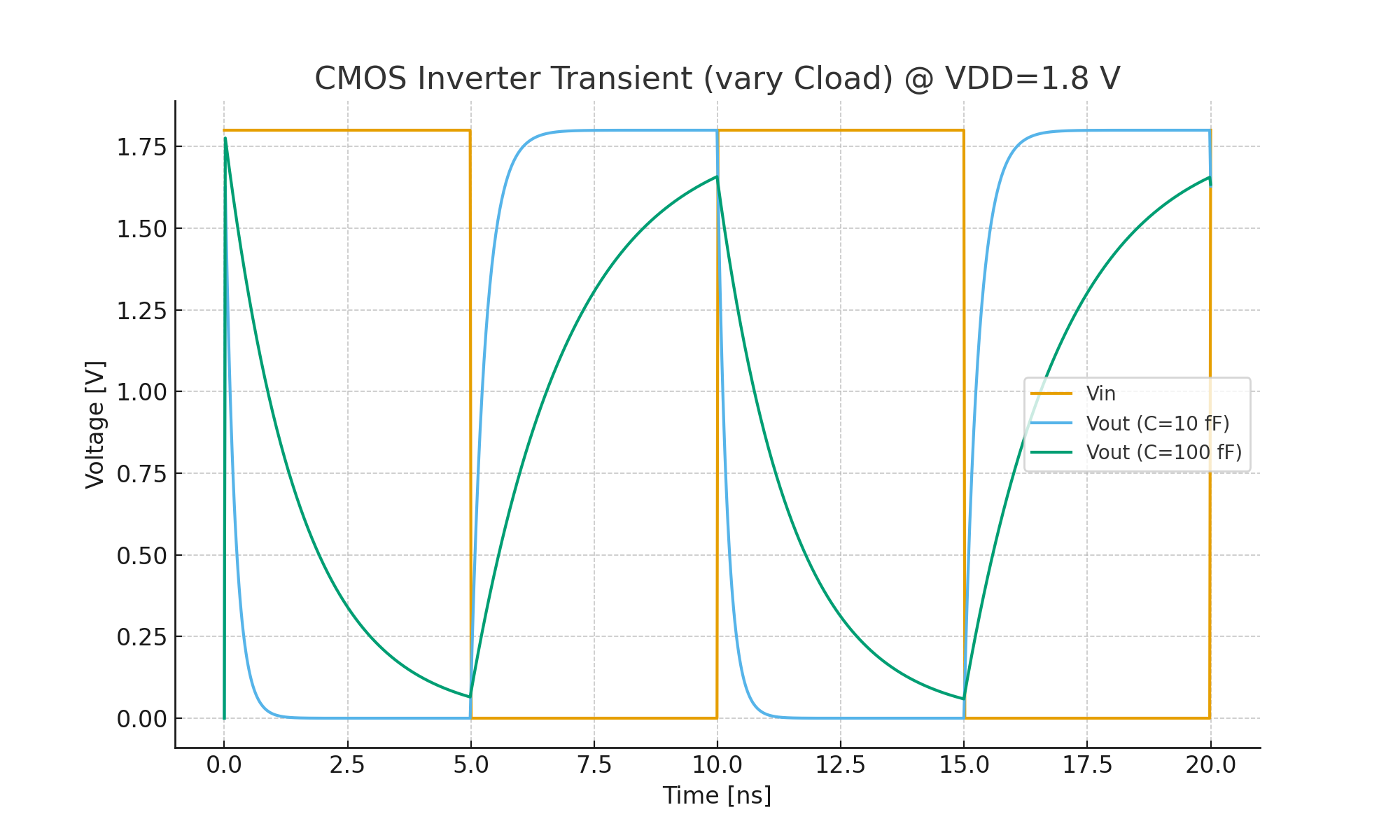 - C_load の影響(10 fF, 100 fF を比較)