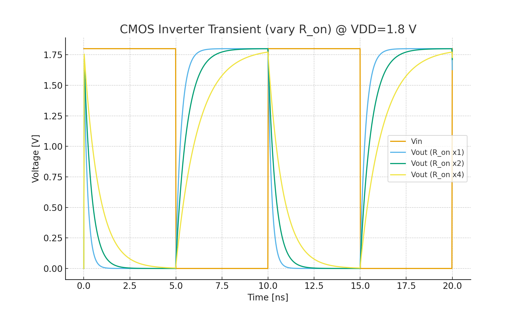 - R_on の影響(1×, 2×, 4×を比較)