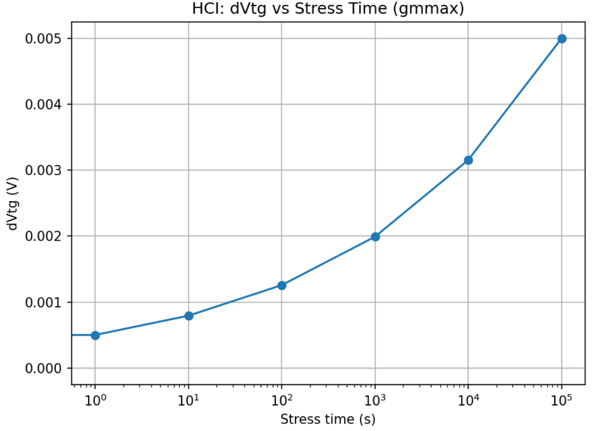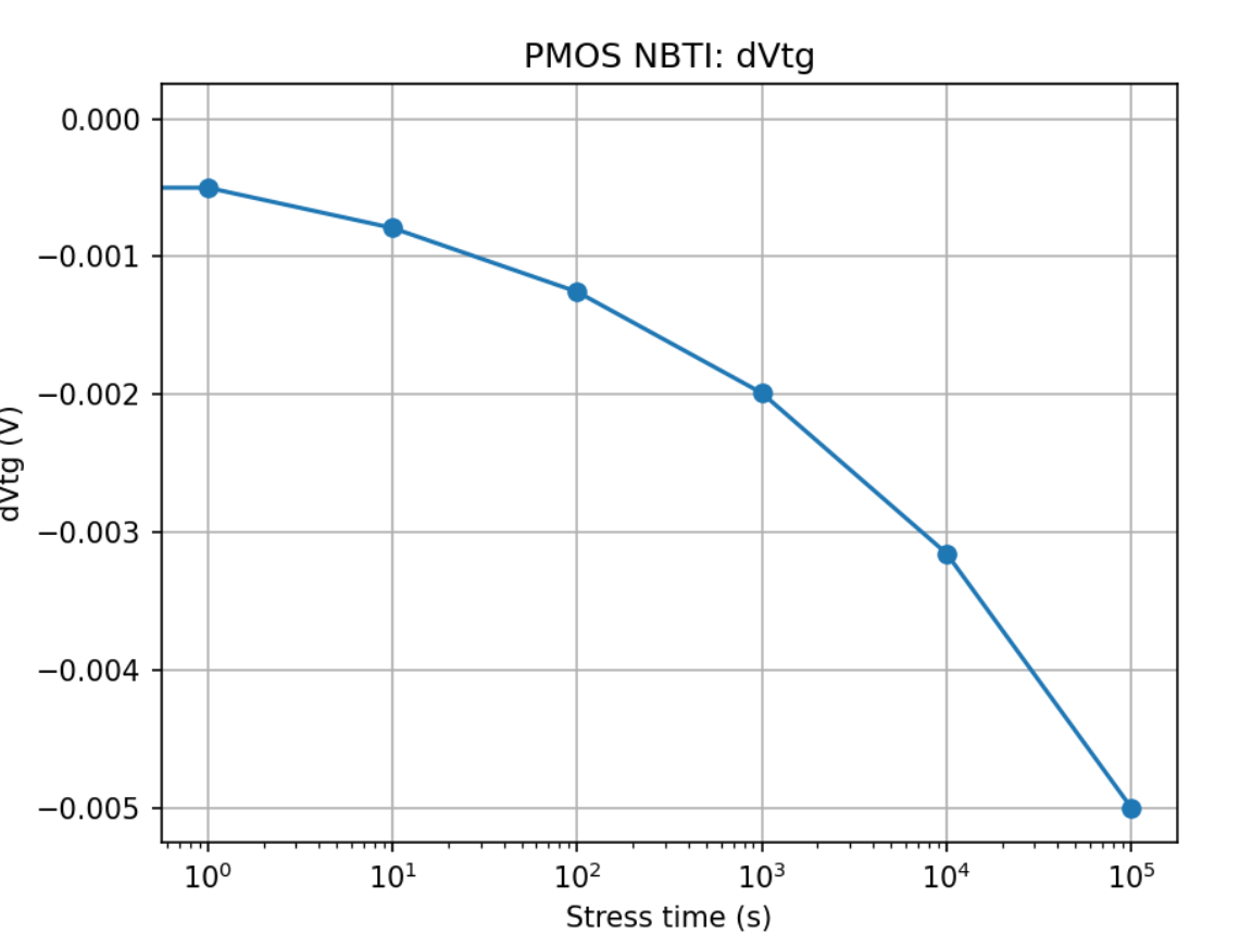 ΞVtg, ΞVtc, ΞIdlin, ΞIdsat - β Full support for both NMOS HCI and PMOS NBTI