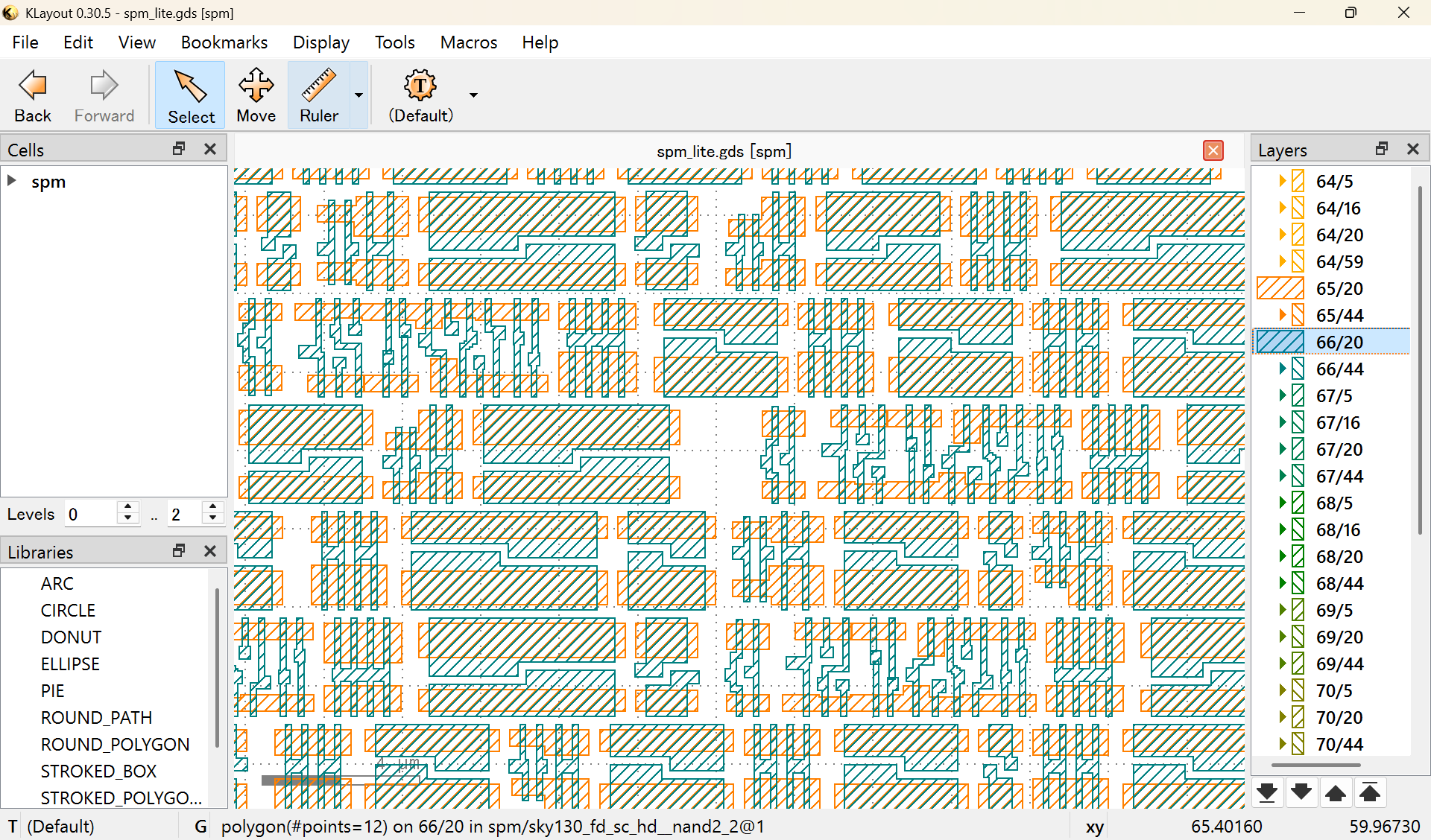 This repository has been successfully validated by producing a full GDSII layout using the sample design spm.