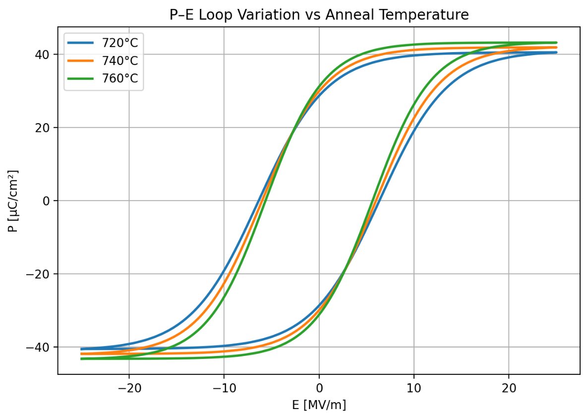 βΆ PβE Hysteresis Loop (Anneal Temperature Variation)