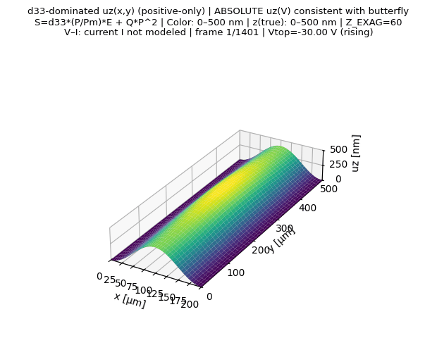 uz(x, y) - d33-dominant actuation with simplified ferroelectric hysteresis